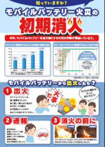 近年、急速に普及したリチウムイオン蓄電池等の充電式電池に起因する火災が年々増加傾向にあります。リチウムイオン電池は、モバイルバッテリーやスマートフォンのほか、ワイヤレスイヤホン、スマートウォッチ、携帯用扇風機など日常生活で身に着けたり、持ち歩いたりする様々な製品に使用されており、リチウムイオン電池使用製品についての発熱・発火等の事故情報が多く見受けられます。