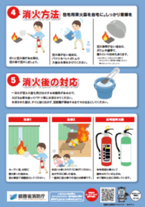 - 発火した時はまず安全を確保し、できれば大量の水で消火しましょう